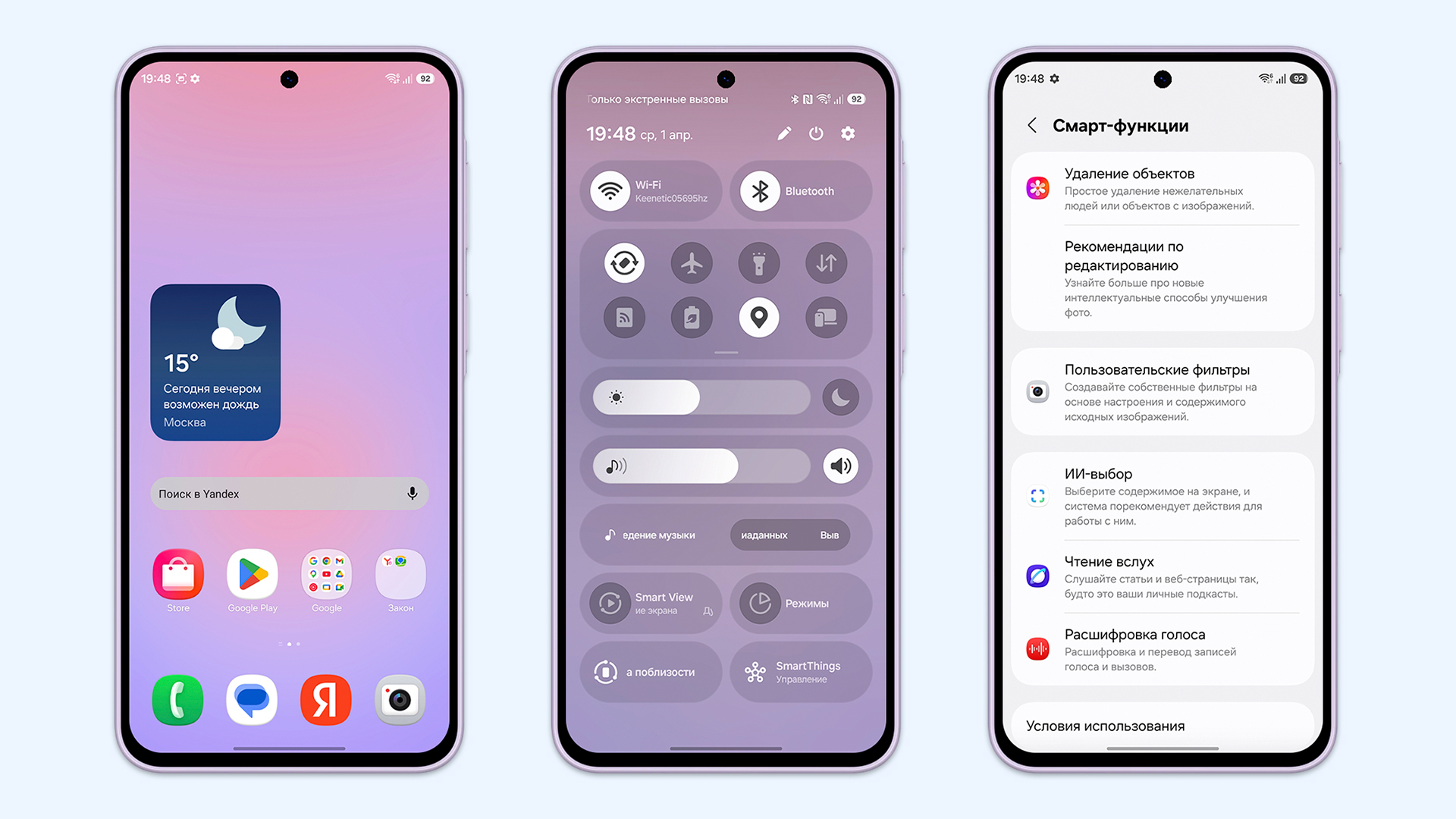 Так как это Galaxy, есть поддержка фирменных ИИ-фишек под названием «Смарт-функции». Они включают в себя удаление лишних объектов с фотографий, создание пользовательских фильтров на основе других изображений, чтение веб-страниц вслух через фирменный браузер и расшифровку диктофонных записей в текст. Последнее будет особенно удобно для студентов. Количество фишек меньше, чем у флагманских моделей, но те что есть полезны в быту.